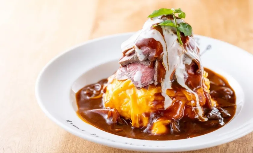 熱海プリンの人気メニュー「ドレスオムライス」にローストビーフがのった贅沢なオムライスが登場。食堂で作っているローストビーフはとてもやわらかく、デミグラスソースとの相性も抜群です。ローストビーフが山盛りに乗った「肉2倍ローストビーフライス(2,500円・税込)も同時に登場!