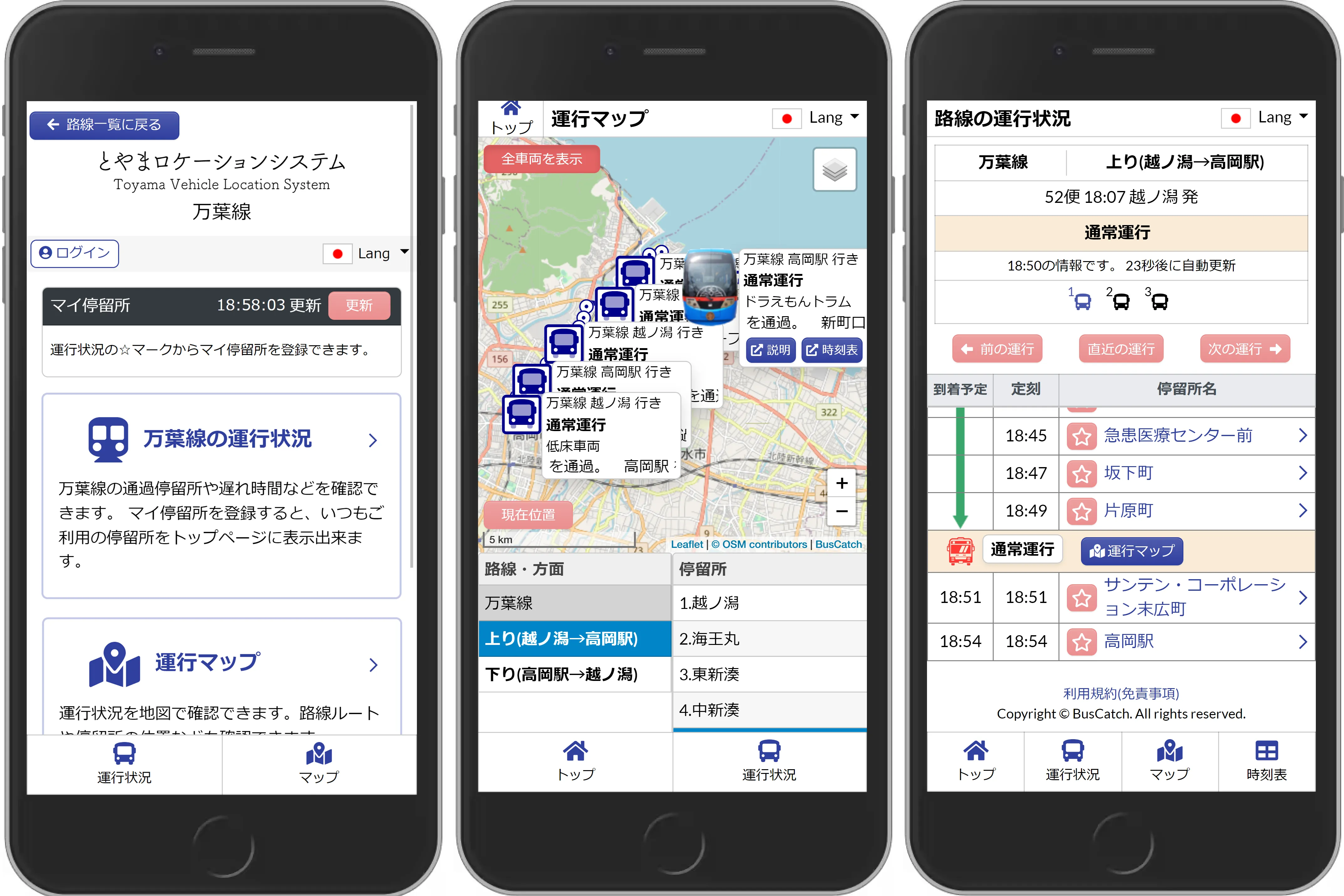 これまで運行状況は、富山県内の路線バス・コミュニティバス、富山地方鉄道市内電車、万葉線のドラえもんトラムに対応しておりましたが、この度万葉線の全車両に対応する運びとなりました。