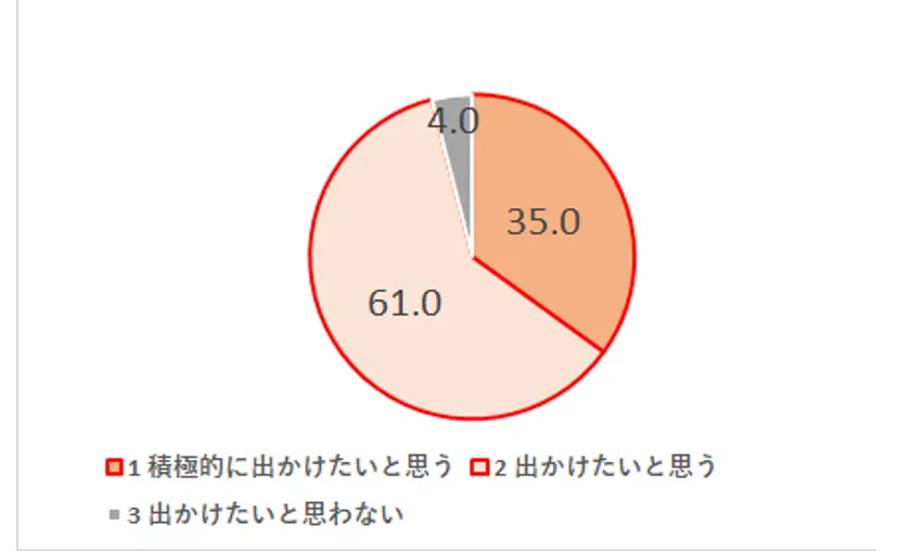 ・出かけたいと思うと回答した方が96%と非常に高い数値となった。お出かけ需要が高いことが判明。