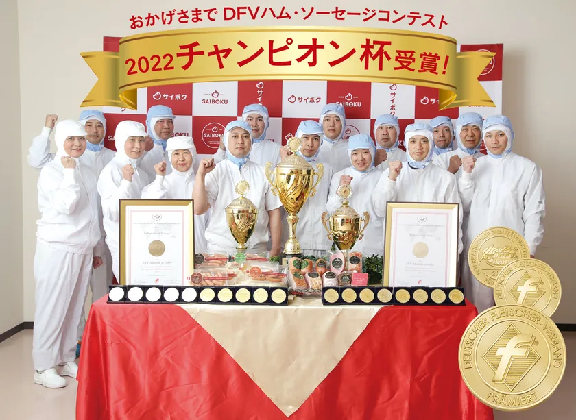 豚の育種から精肉、ハム・ウインナーの製造・販売まで完全一貫体制で手がけているサイボク(運営会社:株式会社埼玉種畜牧場、本社:埼玉県日高市、代表取締役社長:笹崎 浩一)は、2022年8月30日(火)~9月1日(木)に日本で行われた「DFV(ドイツ食肉連合会)」が主催のハム・ソーセージ国際食品品質コンテストで、サイボクは自社ブランド豚肉を原料にした20製品を出品し、18製品で「金メダル」を受賞しました。(※1社あたり各カテゴリー最大10品目)