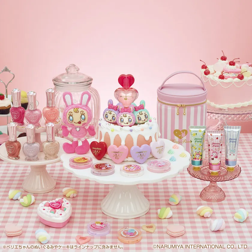 A賞は、たっぷり生クリームといちごのケーキをモチーフにしたコンパクトで、飾っているだけで胸がときめくアイテムです。中の透明パウダーはお化粧直しにピッタリ。B賞は、あの頃のみんなの憧れ、フルーツポンチの香水をネイルオイルにアレンジしました。C賞は、キュートなベリエちゃんの顔のリップバーム。ころんと可愛らしいフォルムで、ポーチに忍ばせればテンションも上がります。薄付きのピンクバームで、キュンと甘酸っぱいラズベリーの香り。このほか、ストロベリー、シトラス、ブルーベリーの全3種の香りから選べるハンドクリームや、キラキラのストーンがトップについたネイルポリッシュ、スイーツモチーフデザインのアイシャドウ、ソリッドパフュームといずれもメゾピアノの可愛さと実用性を両立したアイテムを取り揃えました。