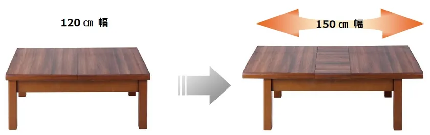 ・用途に合わせて、こたつ天板を120cm幅と150cm幅に切り替え可能
