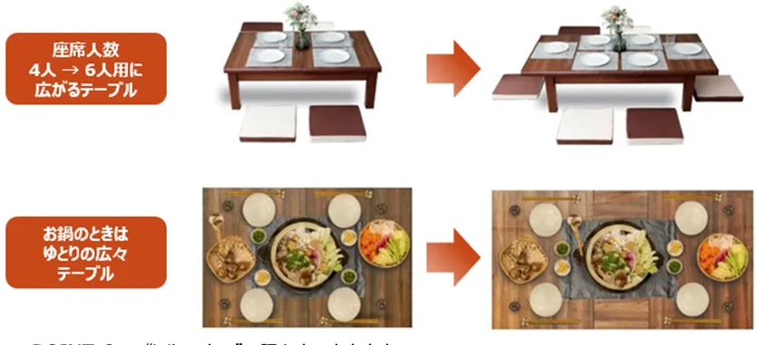 「来客時のお食事や、楽しいこたつでの鍋料理、もう少し食卓が広かったらいいのに。」