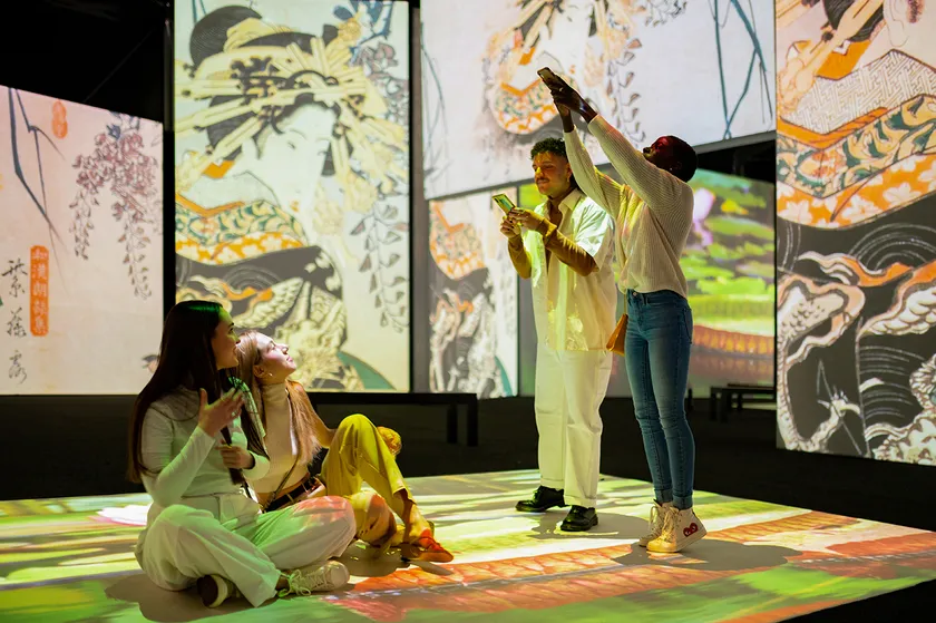 静まりかえった館内で作品から離れて鑑賞する―そんな従来の鑑賞法とは全く違い、「五感で」ゴッホ作品を体験し楽しむことができます。場内に一歩踏み入れた時から、光と色、音とアロマの力強いシンフォニーに包まれ、日常を離れてゴッホの世界に引き込まれます。
