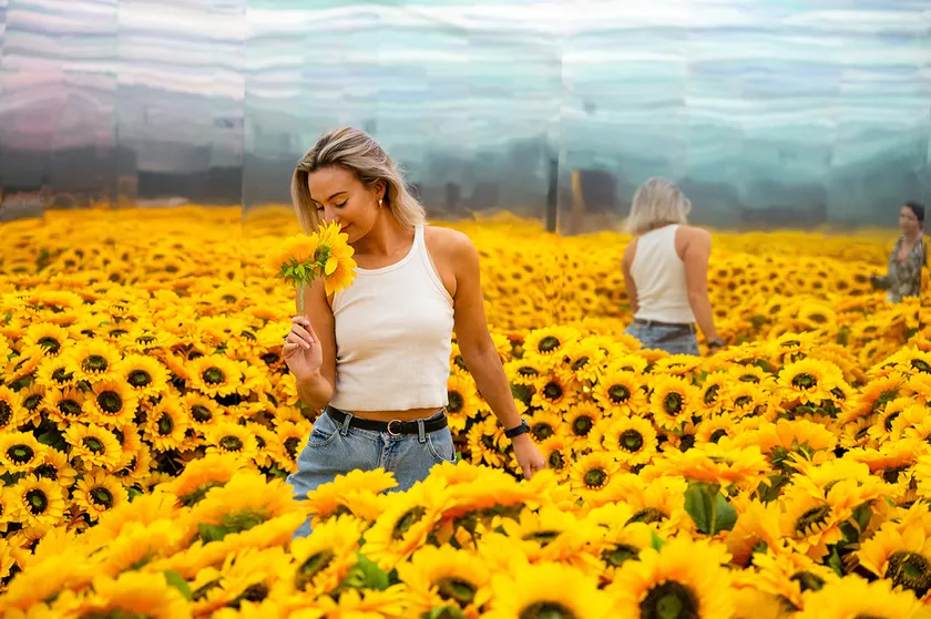 フォトロケーションのひまわり畑とファンゴッホの部屋でAR(拡張現実)の体験ができます。