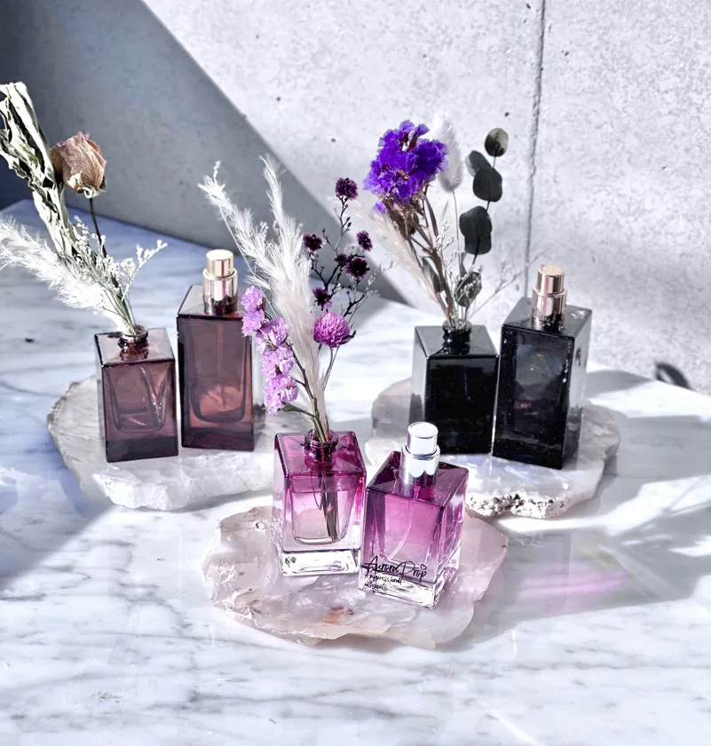 SCENEのルームフレグランスは、ボトルや蓋、ノズルを自由に組み合わせることができます。ボトルの色は全6色あり、インテリアやルームフレグランスを飾る場所のイメージに合わせてボトルカラーを選ぶことができます。