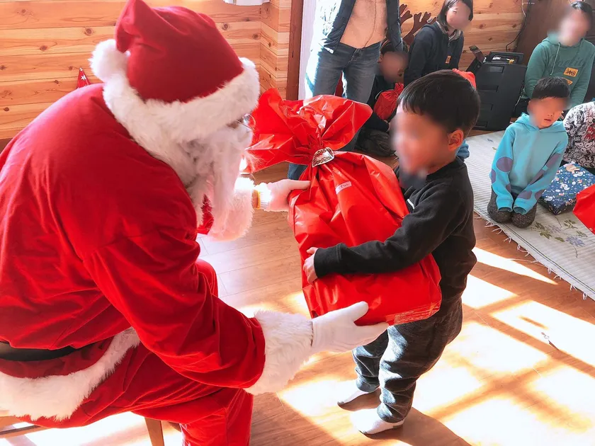 こども達にプレゼントを手渡しすると、最初はちょっとびっくりした顔をします。そのすぐあとに、キラキラした目のとびっきりの笑顔に変わり『ありがとう!!』と言ってくれます。沢山のこども達から『あふれる笑顔』や『ありがとう』の言葉をもらい、次の年もそのまた次の年もその笑顔が見たくて、白いヒゲをつけ大きな袋をもってサンタクロース姿になりました。