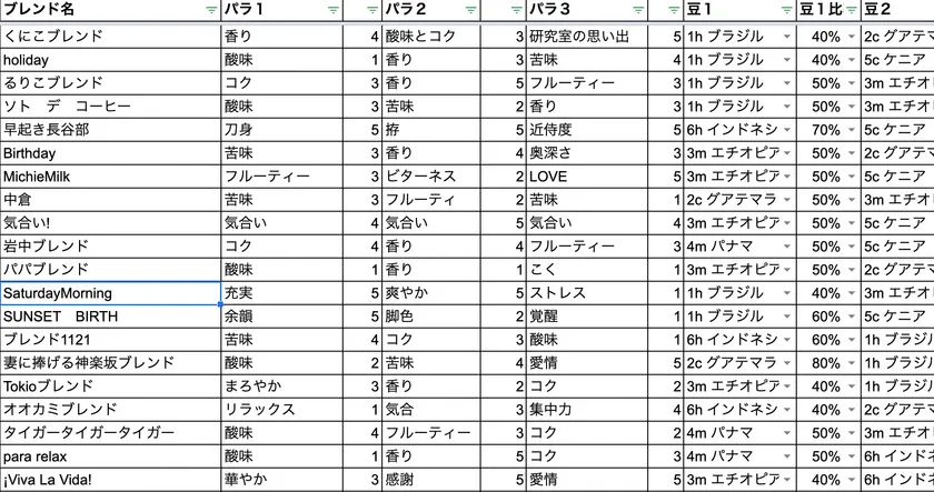 お客様が実際に作ったブレンド