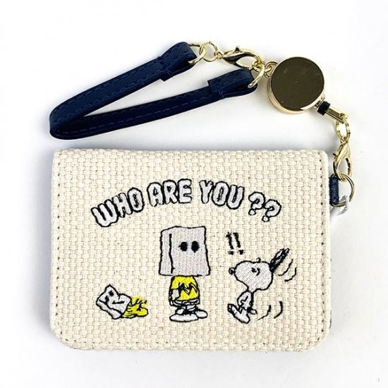 ICカードを入れる部分はこちらです。ビックリマークが浮かんでいるウッドストックがいます。紙袋をかぶっていた人の正体は、チャーリーブラウンだったんですね♪