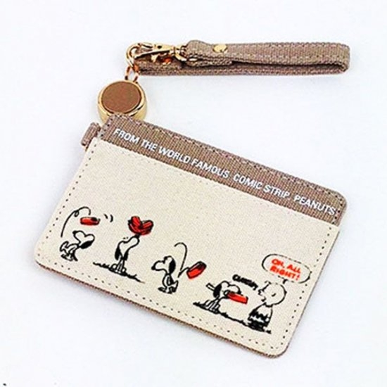 1つ目に紹介するのは、こちらのパスケースです。コミカルなスヌーピーの絵柄がとっても可愛いパスケースになっています。ブラウンとベージュの色味で落ち着いていて、使いやすそうです。