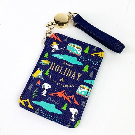 4つ目に紹介するのは、こちらのパスケースです。釣りをしたりキャンプをしたりしているスヌーピーが描かれていますね。シンプルながら目を引くデザインとなっています。