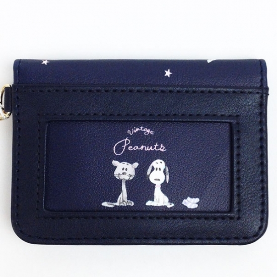 2つ目は、こちらの夜を思わせるネイビーがクールな印象を思わせるパスケースです。スヌーピーとファーロンがプリントされていますね。