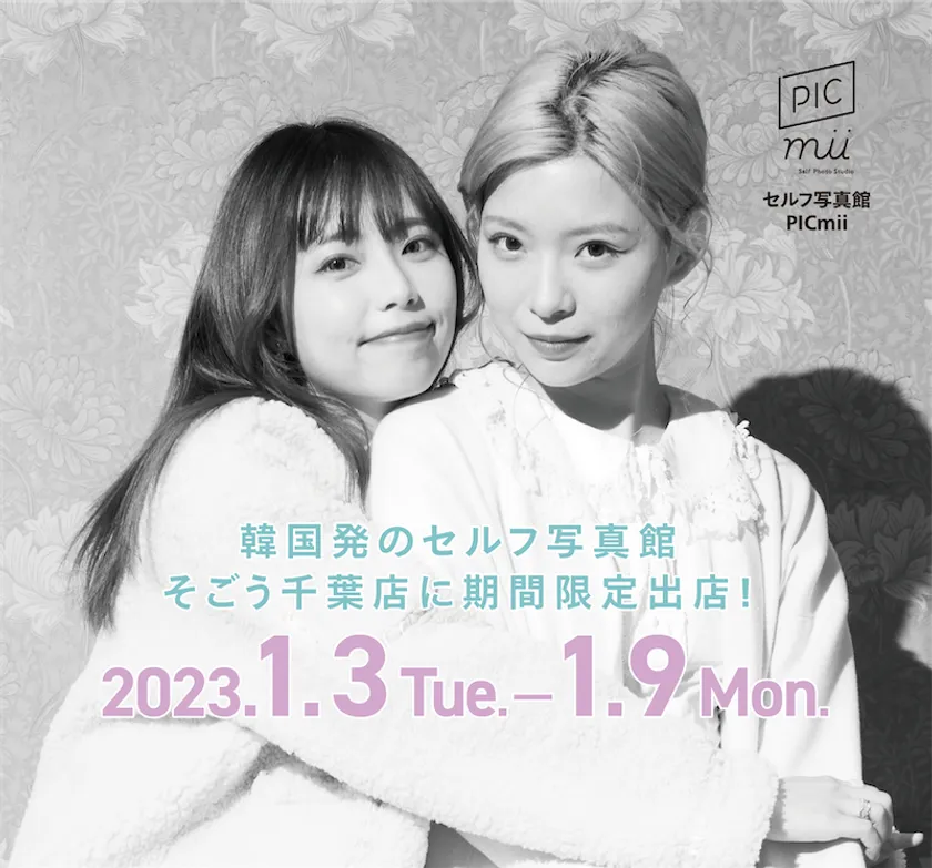 株式会社キタムラ(本社:東京都新宿区、代表取締役社長:浜田 宏幸)が運営するセルフ写真館「PICmii(読み:ピックミー、以下:PICmii)」 https://picmii.studio/ は、2023年1月3日(火)から1月9日(月)の成人の日まで1週間、JR千葉駅徒歩2分のそごう千葉店内に期間限定出店いたします。「PICmii」の千葉県への出張イベントは今回が初の試みとなります。
