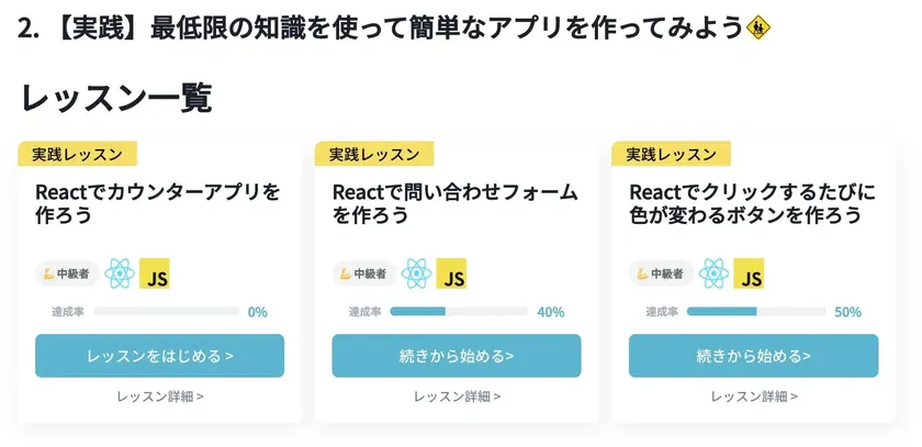 Reactのレッスン一覧の例