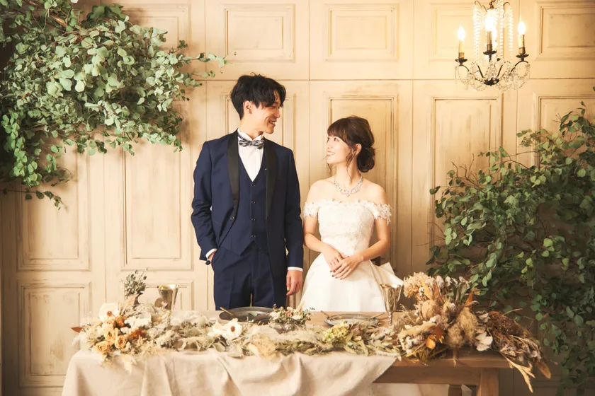 結婚式をしない方により喜んで頂けるように高砂席風のイメージも準備し、披露宴風のお写真も撮影できます。ご家族やご友人などに来て頂き一緒に撮影して頂くことも可能です。またレンガや生花やドライフラワーを使った空間も作り1つの空間でより想い出を残して頂けます。