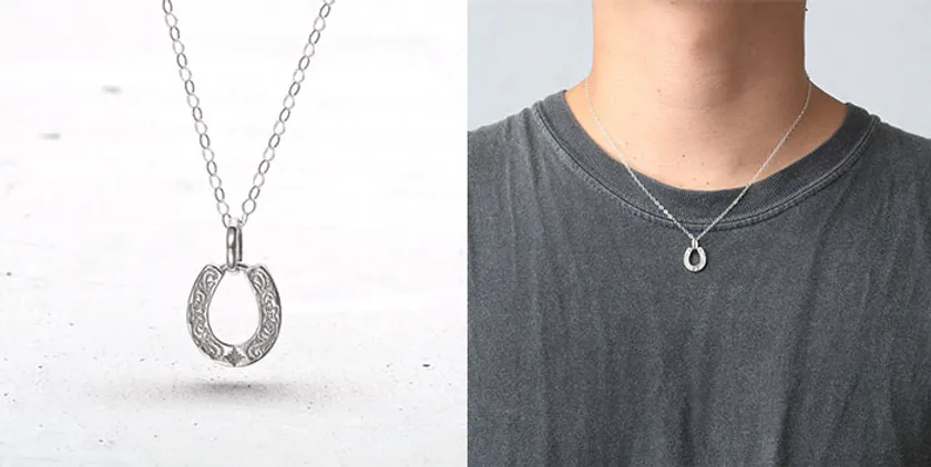 幸運の象徴として人気の馬蹄(ホースシュー)モチーフのペンダントと細見のチェーンのセットに。シンプルなデザインで男女問わず着用しやすいデザインです。