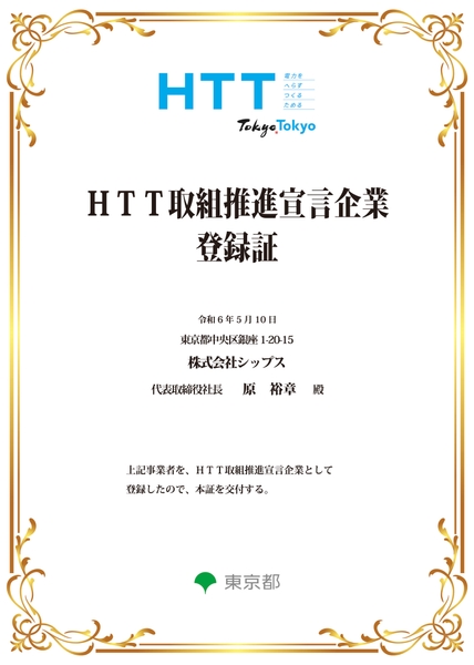 株式会社シップス(代表取締役 社長:原裕章、本社:東京都中央区)は、東京都が推進する電力のHTT((H)へらす・(T)つくる・(T)ためる)を実行し、脱炭素社会の実現に向けた取組を行う制度「HTT取組推進宣言企業」に登録されました。