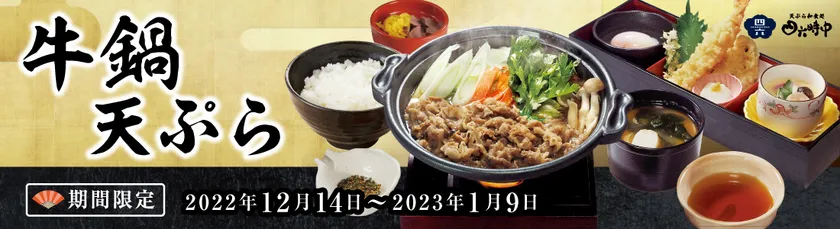 『天ぷら和食処四六時中』年末年始限定メニュー登場! 12月14日(水)から「牛鍋天ぷら御膳」販売開始