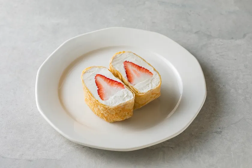 クレープの皮には薫り豊かな小麦粉を使用しています。お店で毎日丁寧に焼き上げる生地はもちもちで、自家製の生クリームと伊豆いちごをぎゅっと包みます。