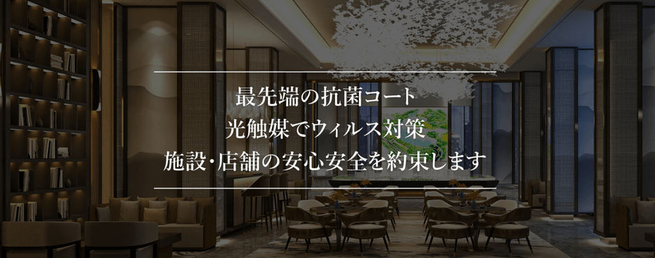 屋内でも⻑期間継続的に光触媒作⽤を発揮し、直接⼈体に付着しても安全とされる極めて優れた光触媒コーティングです。