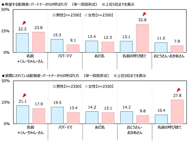 ・配偶者・パートナーからどのように呼ばれている? 男性1位「名前+くん・さん」、女性1位「名前の呼び捨て」