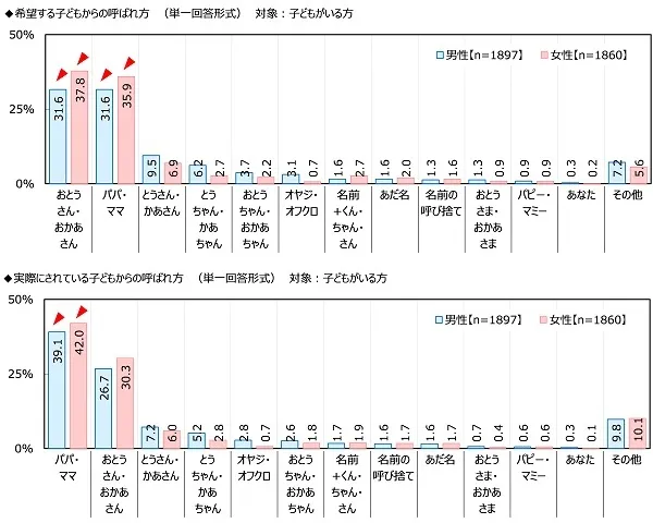 ・子どもからどのように呼ばれている? 男性1位「パパ」、女性1位「ママ」
