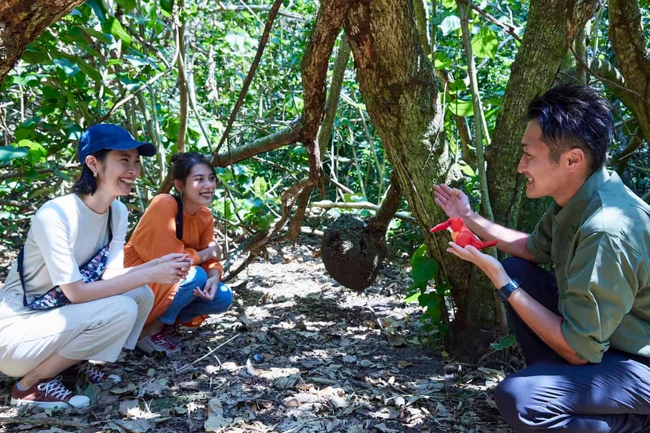 西表島に棲む生き物に詳しいホテルスタッフが、ジャングル内を案内します。日本の蝶としては最大種の1つであるオオゴマダラは、食草のホウライカガミの裏にタマゴを産み、孵化した幼虫はその草を食べて成長することや、リュウキュウアカショウビンはタカサゴシロアリの巣を好んで住処にしているなど、タマゴや巣にまつわる話をします。実際に生き物が生活をする場所で、どんな暮らしをし、タマゴを産み、子育てをするのかなど、自然界でのタマゴにまつわるさまざまな話からジャングルの面白さを知ることができます。散策中に、本物のタマゴを見つけることができるかもしれません。
