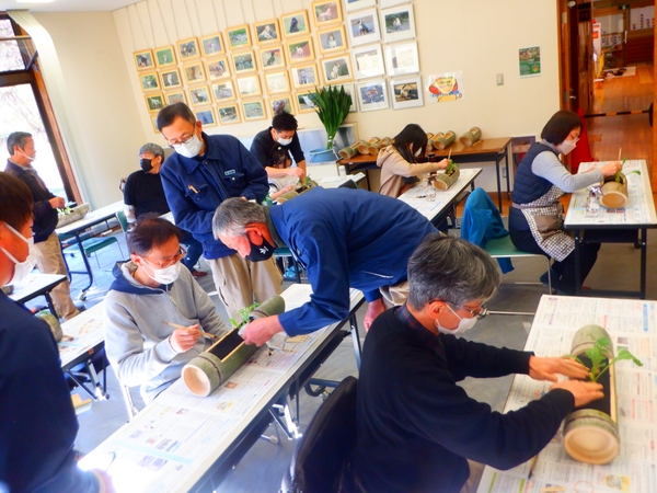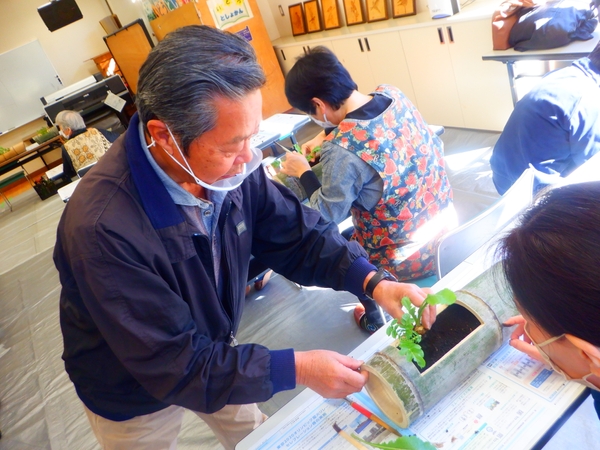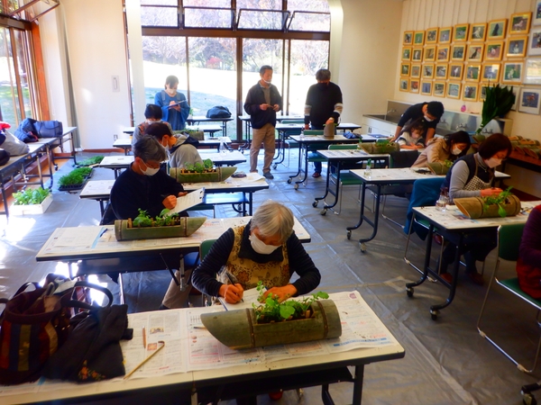 正月に向けて竹の器を用いた「春の七草の寄せ植え」を作る教室を実施し、里山の自然と文化・伝統技能を楽しく学んでいただく。