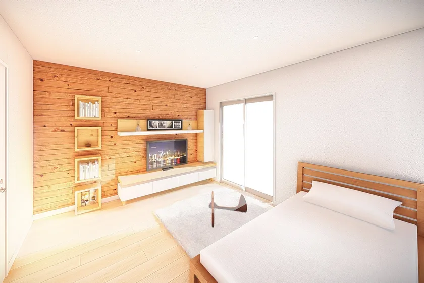 ・木目の壁紙には温もりあるコテージに居る様な安心感でのんびりとしたお部屋時間を過ごせます。