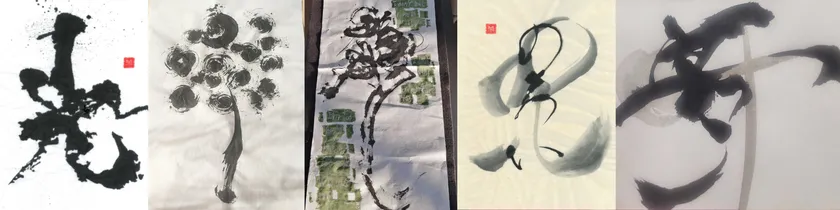 20歳、大学生をしながら書道アーティストをしています。作品は書道アートということで少しアートに近い書道です。これは前衛書といって現代的な書道です。