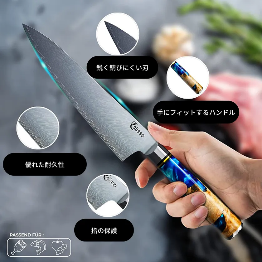 ドイツの包丁ブランド『Calisso カリッソ』から鋭い切れ味と美しいデザインを併せ持つダマスカス包丁をご紹介します。
