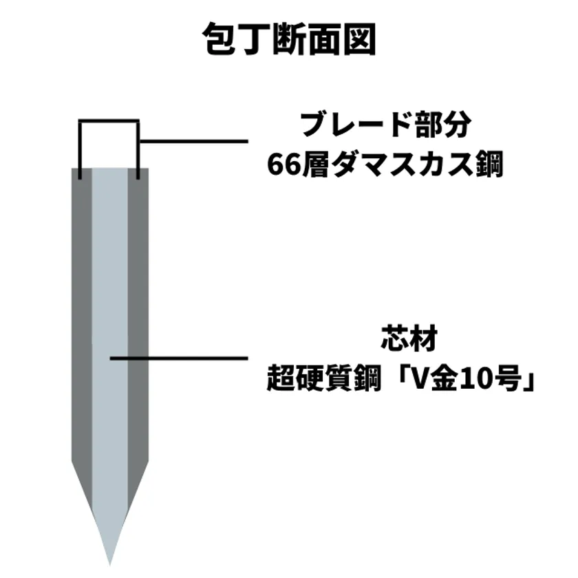 刃に施された積層模様はスタイリッシュでユニーク、オリジナリティに富んでおり、特に料理好きな方々には非常に人気を誇る包丁です。