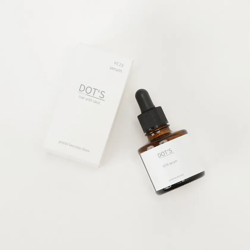 15%のピュアビタミンCを高濃度で安定配合、お肌を整える甘草フラボノイド配合。ピュアビタミンCは、優れた美容効果が知られていますが、安定性が悪く化粧品に配合してもすぐに効果を失ってしまうという欠点がありました。DOT‘Sは、水を使わない独自処方で高濃度のビタミンCを長期安定させており、ビタミンCの本当の効果を体感できる美容液です。