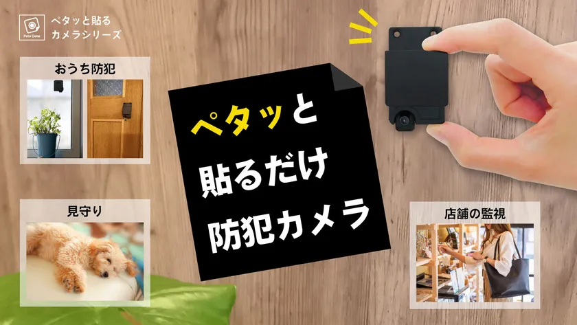 費用や設置場所など導入のハードルが高い防犯カメラを、シール感覚でペタペタ好きな場所に貼れるものにしたい…そんな思いで生まれたのがペタカメ第3弾の「Peta Came防犯カメラ」です。スマホ連携、WiFi&インターネット接続、メモリー、長時間録画などの機能に加え、撮影画角を強化し、取付方法のバリエーションを増やしたことで、お出かけの間に大切な家族やペットの様子が気になる時や、カメラを目立たせたくないスタイリッシュな空間などシーンや場所を選ばず設置することが可能になりました。