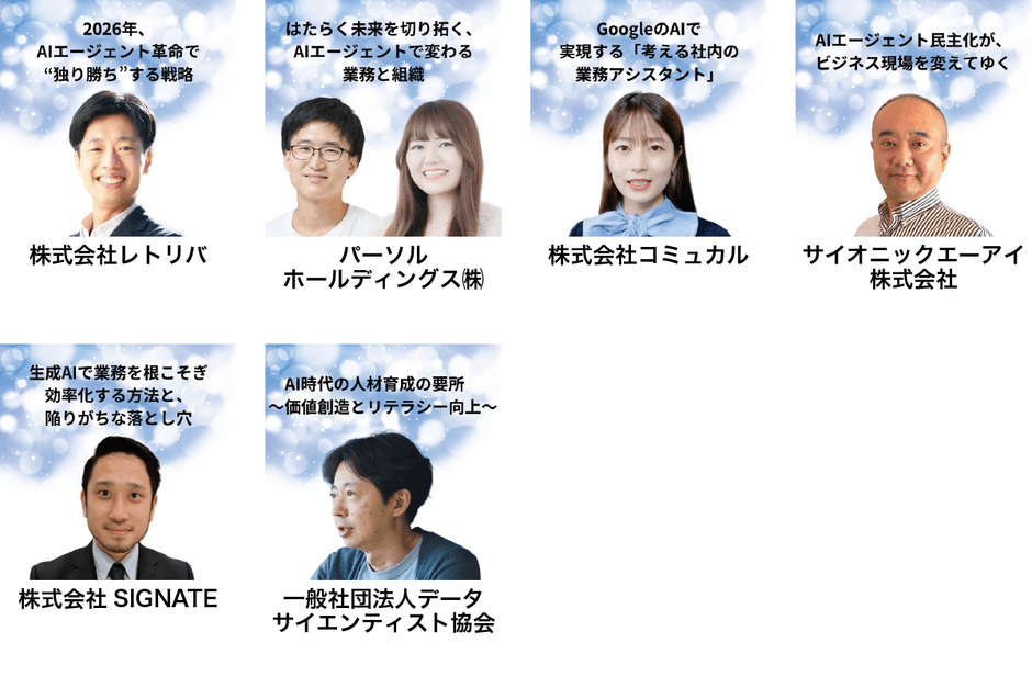 最先端の「AIエージェント」技術動向を把握したい方、当日ご来場いただけなかった方にとって、見逃せない内容となっております。ぜひこの機会にご視聴ください。