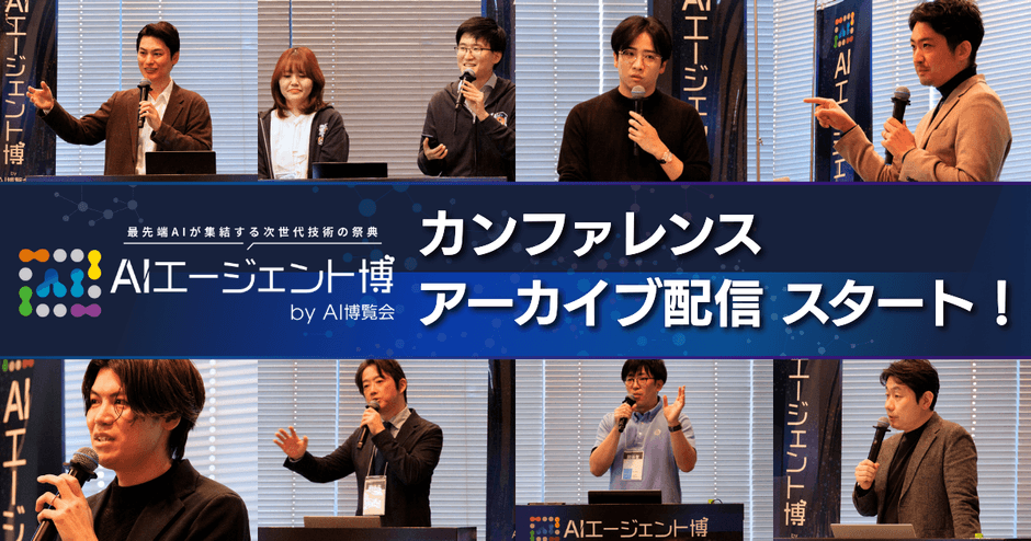 国内最大級のAIポータルメディア「AIsmiley」を運営する株式会社アイスマイリー(東京都渋谷区、 代表取締役:板羽晃司)は、2025年12月11日(木)・12日(金)の2日間にわたり開催した「AIエージェント博 by AI博覧会」のカンファレンスのアーカイブ配信を2月9日(月)より開始いたしました。「AIエージェント」分野の第一線で活躍する登壇者たちによる貴重なセッションの数々は、ビジネスパーソン必見の内容です。