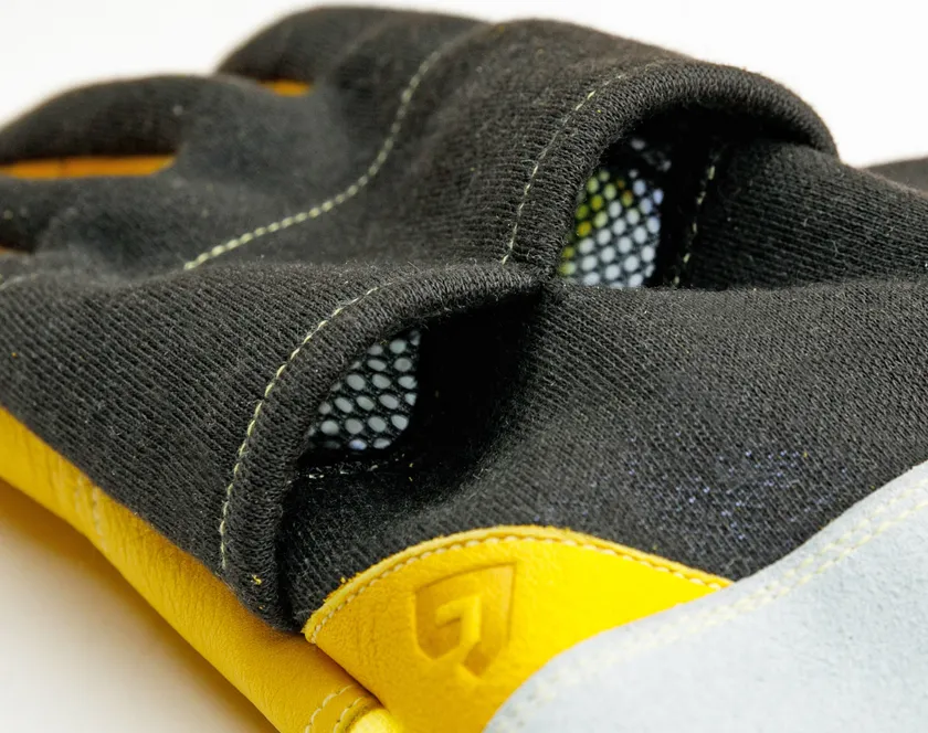 そこで考え抜いたのが甲側の通気口、すなわち「ベンチレーション」。保護性能を維持しながら手袋内にこもった空気を逃がす構造を取り入れることで手袋内にこもった空気を逃がし、快適性を高めます。