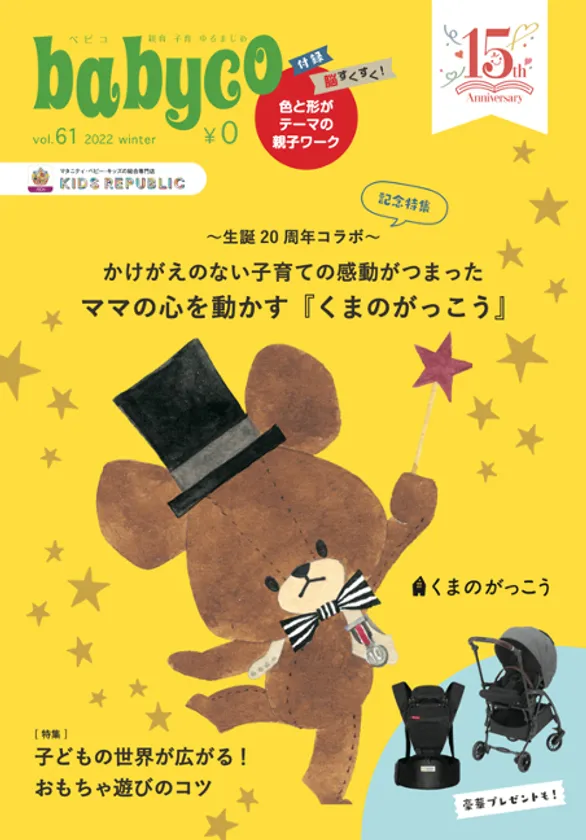 ■フリーマガジンbabyco61号の表紙コラボは、生誕20周年の大人気絵本!「くまのがっこう」記事では、担当編集者へのスペシャルインタビューで制作の裏話を公開!