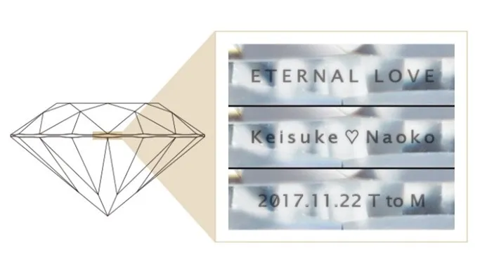 リングの内側への刻印よりも珍しいダイヤモンドの刻印。ふたりだけの秘密として情熱的な言葉を刻むのもお勧めです。婚約指輪をより特別なものにするために、刻印ができるダイヤモンドはダイヤモンドブランドとして精緻な加工技術を持つラザール ダイヤモンドならではのサービスです。
