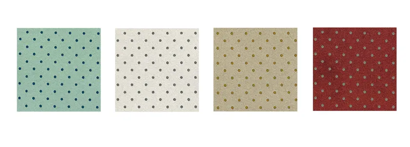 左からUS4147 Opalene/2008ブルー、US5969 Fog/SKGライトグレー、US3916 Doeskin/YR64マスタード、US1155 Burgundy/994モカグレー