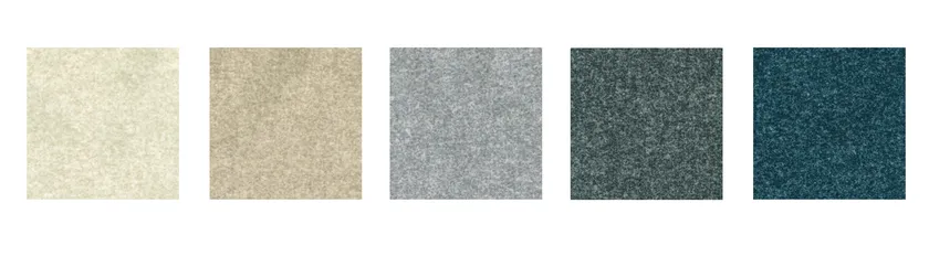 左からI アイボリー、BE ベージュ、LGR ライトグレー、DGR ダークグレー、DB ダークブルー