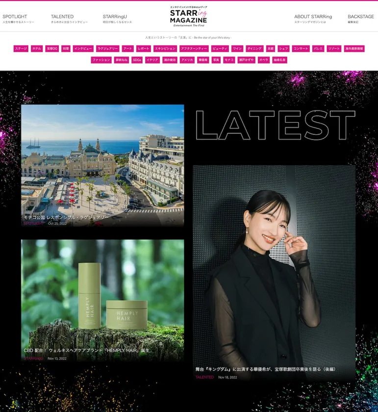 STARRing MAGAZINEは、この世の中で、軽やかに、自由に、しなやかに、生きていくために、人生の愉しみと喜びを提案する「エンタテインメントする」Webマガジンとして2022年4月に誕生しました。