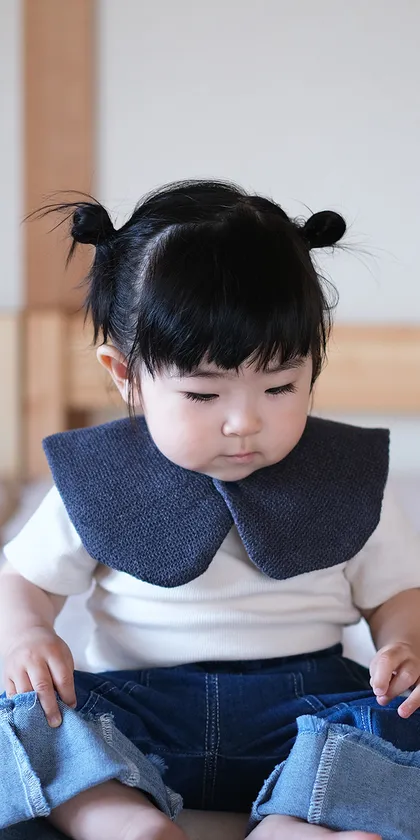 スタイの形状もデザイン、使いやすさを追求しており、ラーナ(写真左)は前後で違うデザインで、フォーマルでも使える着け襟タイプのスタイです。裏地にはスタイ専用に織ったサラッと柔らかな肌触りの良いガーゼ生地を使用しています。ブレラ(写真中央)は前掛けの面積が広く、よだれをしっかりキャッチする定番のU型スタイです。成長に合わせて二段階で首回りのサイズを調整できます。グラフ(写真右)は動きが活発になり始めた赤ちゃんにおすすめのエプロン型スタイです。 腕を通して背中のボタンで留めるので、スタイがずれたり、赤ちゃんが自分で外すことを防ぐことができます。