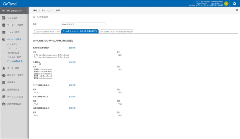 オンプレのExchange Serverでいう「作成者」権限をOnTimeでロール(役割)設定として設定できるようになりました。これにより会議室等で自身が作成した予定を他ユーザーが勝手に変更することを防ぐことが出来ます。