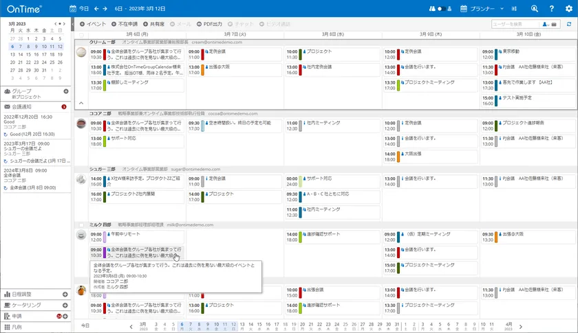 <「OnTime(R) Group Calendar for Microsoft」デモサイト>