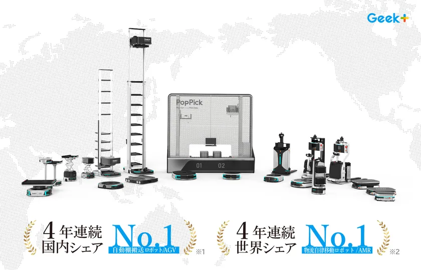 ギークプラスが棚搬送型ロボット(AGV)にて 4年連続で国内シェアNo.1を獲得 自律移動ロボット(AMR)では世界シェアNo.1を獲得