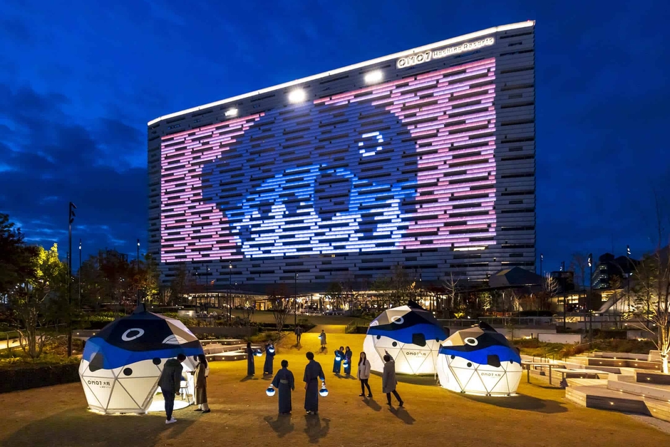特徴4 ホテルの外装膜に浮かびあがる「PIKAPIKAふぐナイトショー」