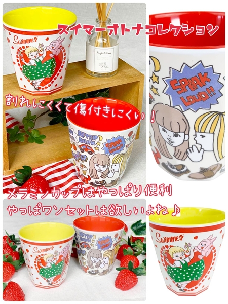 イベントでも大人気だったスイマーのオトナコレクション♪その名の通りオトナカワイイアイテムが盛りだくさん!そのなかから傷つきにくく、割れにくいメラミンカップをご紹介♪可愛いデザインだけどお手軽価格だからプレゼントにもおすすめです。