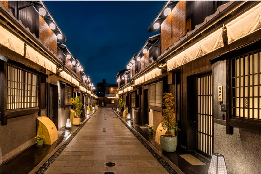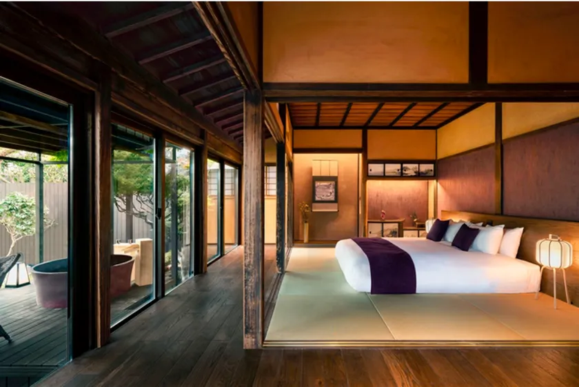 築110年以上の町家が立ち並ぶ、京都の路地一体をリノベーションした全23室の旅館。昔の花街を思わせる街並みで、外の世界と隔離された非日常を味わえます。京都の自然美をテーマとした「TAKE」「MIZU」「IWA」「HANA」「HA」の5つのカテゴリーを設けており、それぞれのテーマから着想を得た内装・インテリアが楽しめます。