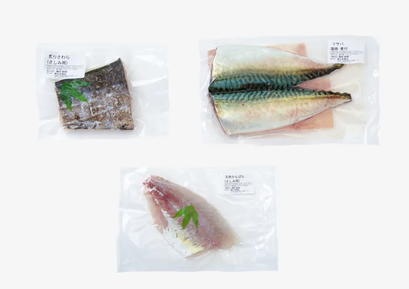 鮮魚店からその日捕れた海の幸を、お刺身用・煮付け用など魚によって捌いてもらい真空パックしてお届けします。